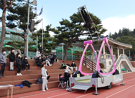 전통 놀이 한마당의 메인 오브제로 활용 (전통 그네 느낌 연출)
